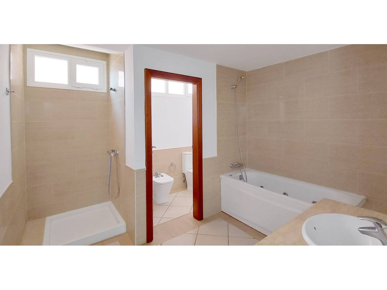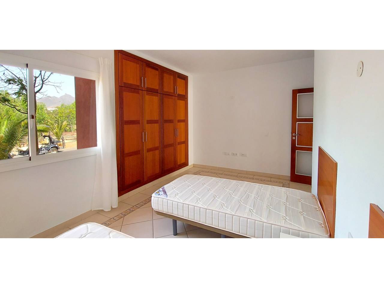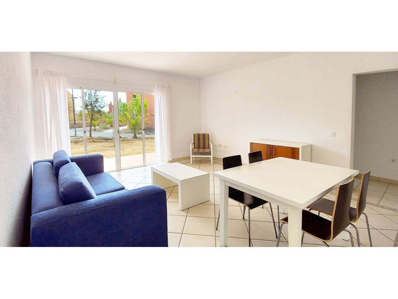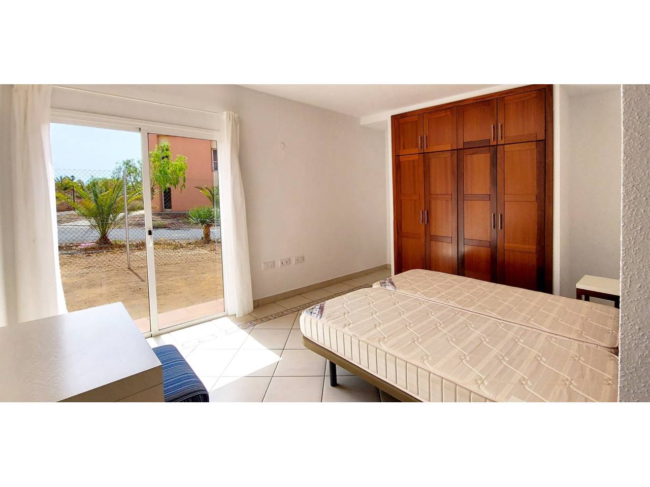 Casa en alquiler en El Guincho.Apartamento de 1 sola planta, con 2 habitaciones, 2 baños y jardín, de 126 m2. Entrando a la vivienda, un amplio recibidor, a mano izquierda la cocina equipada con nevera-congelador y vitrocerámica, junto a ella, la solana independiente con lavadora y termo eléctrico de 100L. A continuación, el salón-comedor con tomas de TV en ambos lados de la habitación y ventanas correderas que dan acceso al jardín de 20 m2. Hacia el interior de la vivienda, el baño secundario con ducha, la habitación secundaria con armarios empotrados 2 camas individuales y vistas a las zonas comunes. Frente a la habitación secundaria, la habitación principal, con 2 camas individuales, armarios empotrados, ventana corredera con acceso al jardín y baño en suit con bañera, ducha y el inodoro y bidet independientes.