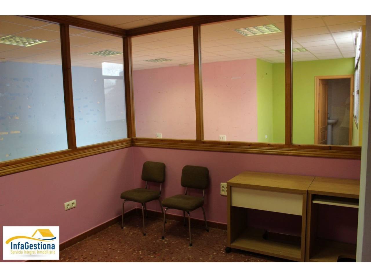 .Local de 100 mts, muy céntrico y prácticamente diáfano ideal para despachos, clínicas, consultas médicas también puede ser muy interesante para albergar un vivero de empresas, ya que cuenta con varios puestos de trabajo con instalación de internet independiente por cable.Cuenta con un despacho acristalado y un cuarto de baño.En las zonas comunes se encuentra la sala de espera, wc para minusválidos y ascensor.Otra opción muy interesante es para vivienda de personas de movilidad reducida ya que las instalaciones lo permiten.