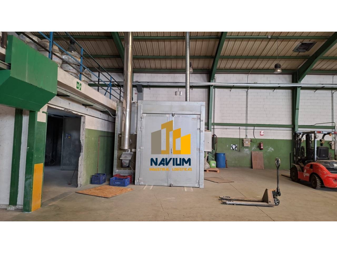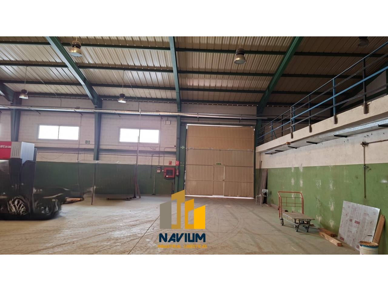 Navium alquila nave industrial con gran potencia eléctrica.Navium alquila nave industrial acondicionada, de 1.727 m2, sobre parcela de 2.000 m2.SUPERFICIESPlanta baja de 1.402 m2 con una altura libre máxima de 8,80 m en cumbrera.Planta altillo en la propia nave, de 144 m2, con acceso por escalera.Planta alta de 184 m2 destinada a oficina acondicionada.Patio a tres vientos, con una superficie total de 580 m2.CARACTERÍSTICASAcceso a nave mediante portón lateral TIR de 4.554,75 m.Acceso peatonal independiente y muy representativo.Acceso a parcela con portón corredero motorizado.Estructura metálica ignifugada y cerramientos de bloque prefabricado de hormigón.Cubierta de panel sándwich con lucernarios.Oficinas acondicionadas y lista para entrar, representativas, dotadas de climatización, red de voz y datos, fuerza, falso techo, aseo masculino y femenino.Instalaciones generales bies contraincendios, centralita y pulsadores de alarma, alumbrado led y lámparas de descarga, fuerza trifásica de gran potencia repartida en cuadros secundarios, vestuarios y comedor.La nave tiene muy buenas calidades constructivas y se encuentra en un estado de conservación excepcional, lista para su uso, preferentemente industrial.COMUNICACIÓNSituada en el PI de Velilla de San Antonio, con conexión rápida con A3 y M50.www.ilnavium.com