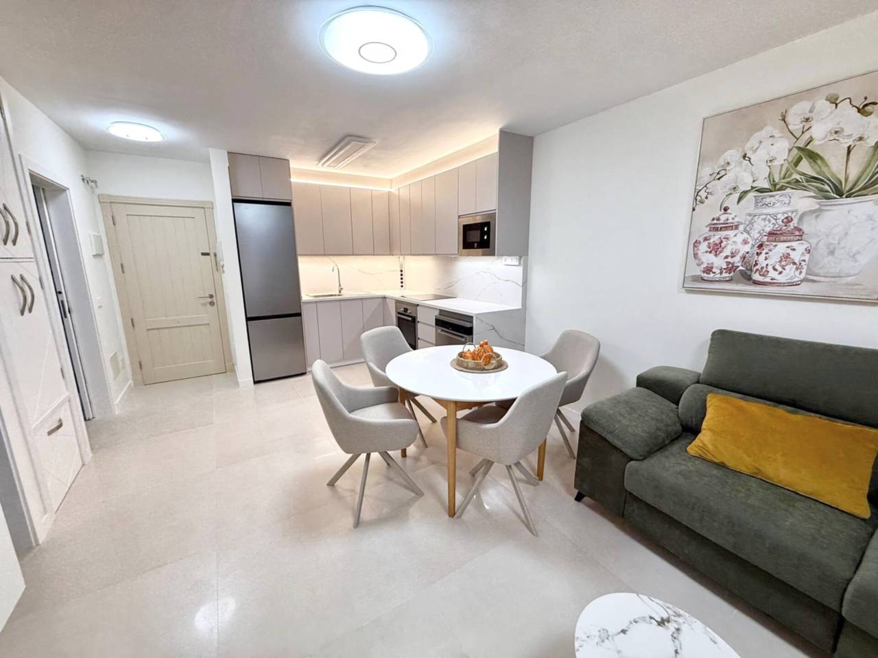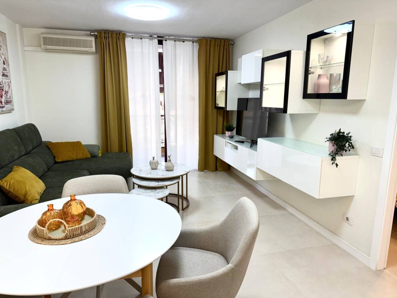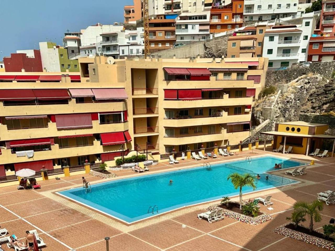 Piso en Puerto de Santiago Sur Tenerife.Se ALQUILA piso recién reformado en Residencial Olivia Sunset en Puerto SantiagoSantiago del Teide.La vivienda se alquila en régimen de larga duración mínimo un año.La vivienda, de 60 m2, tiene salón comedor con cocina integrada, un dormitorio y un baño. Además cuenta con una terraza de 12 m2 con toldos, en la que disfrutar de unespacio de desahogo.- La vivienda se encuentra amueblada y equipada con todos los electrodomésticos a estrenar, y tiene armarios empotrados.- El residencial cuenta con piscina.- El alquiler incluye una cómoda plaza de garaje en el mismo edificio.- La vivienda es para 2 personas como máximo.- No se admiten mascotas.- Los suministros no están incluidos.Se requiere estabilidad laboral e ingresos suficientes demostrables.