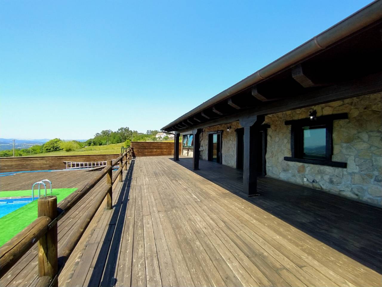 Chalet en venta en A Estrada.Superficie total 567 m, chalet superficie solar 3000 m, superficie útil 218 m, hab. individuales 4, habitaciones dobles 1, 3 baños, antiguedad entre 5 y 10 años, armarios empotrados más de 2, carpintería exterior aluminio, cocina, comedor, estado conservación buen estado, jardín propio, piscina propia, suelos tarima flotante.