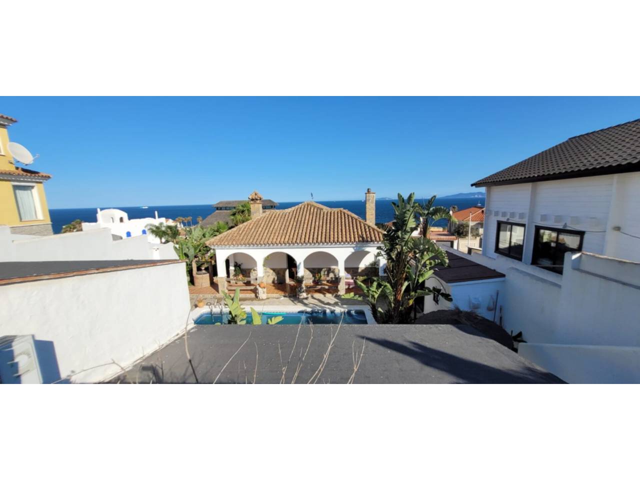 Chalet en venta en El Pelayo-Parques Naturales.Espectacular chalet independiente en venta en Punta Carnero dentro de un paraje natural con impresionantes vistas a todo el estrecho y Africa. Diseñado como un pequeño cortijo precioso y acogedor consta de una vivienda con 3 dormitorios, baño completo, cocina equipada abierta al salón comedor con chimenea. Por otro lado tenemos un apartamento de 2 dormitorios, un baño completo cocina equipada abierta al salón comedor. Garaje de unos 200 metros diáfanos. En el exterior hay una cocina completa y equipada acristalada, baño exterior, piscina y pozo. Hay posibilidad de hacer un tercer apartamento de unos 140 m. aproximadamente. Amplio y iluminado listo para entrar a vivir