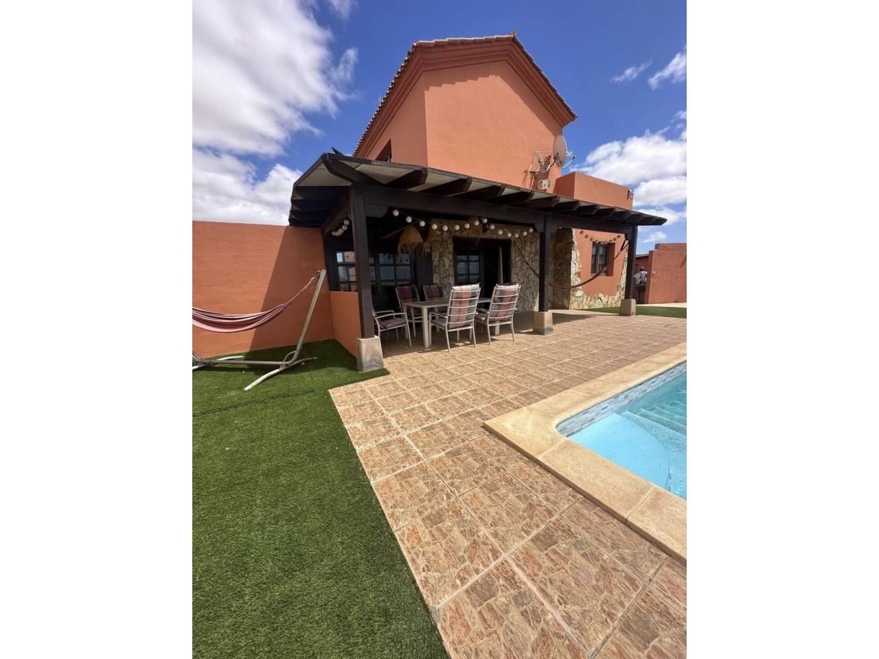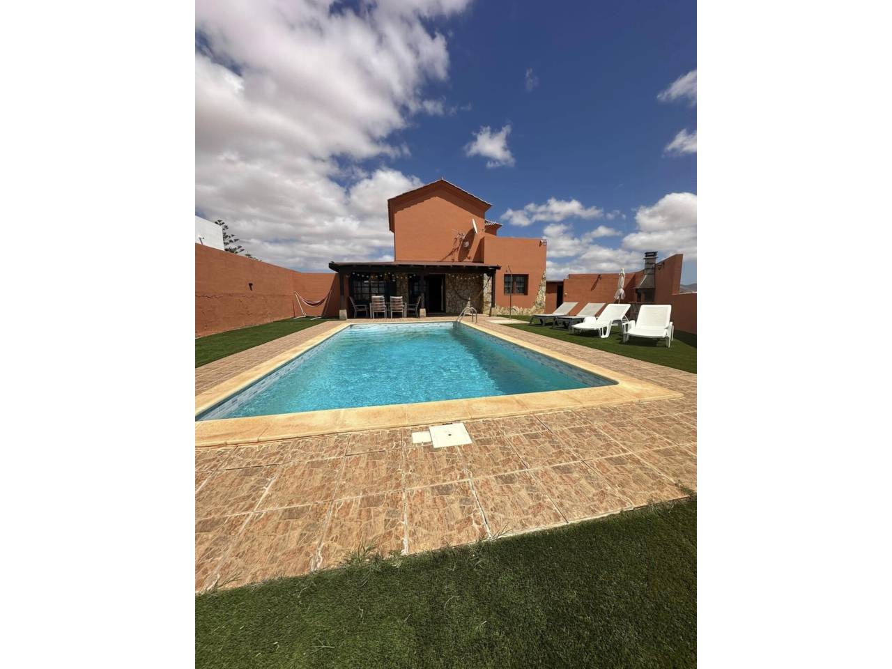 Grandioso Chalet de 3 dormitorios y 4 baños tiene piscina en Antigua.Grandioso Chalet tiene piscina privada, amueblado y equipado con 3 dormitorios y sus 3 baños completos. Todo éllo ubicado en Antigua, uno de los pueblos más bonitos y céntricos de Fuerteventura Antigua cuenta con Centro de Salud, Farmacia, Supermercados, Cafeterías, Restaurantes, Iglesia, Parques Infantiles, . Además se encuentra a 15 minutos de las playas de Caleta de Fuste, a 20 minutos del Hospital y de Puerto del Rosario, a 15 minutos de Betancuria, a 10 minutos de Tiscamanita, Consta de Planta baja 2 Dormitorios amplios 1 en suite. 2 Baños completos 1 en suite 1 con bañera y 1 con ducha. Amplio Salón Star. Comedor en Terraza cerrada con pérgola y cristaleras. Cocina independiente bien equipada. Gran Terraza con loza y césped artificial. Terraza exterior Pérgola de madera. Piscina. Zona Barbacoa. Ducha de piscina. Cuarto de lavadora Aseo. Despensa-Trastero. Planta alta 1 Dormitorio amplio. 1 Baño completo con ducha. 1 Terraza Solárium. 135 m2 construidos Terrazas - Terreno de 1.020 m.