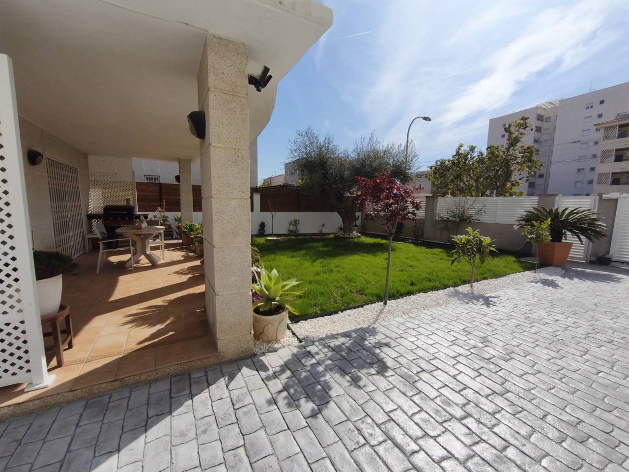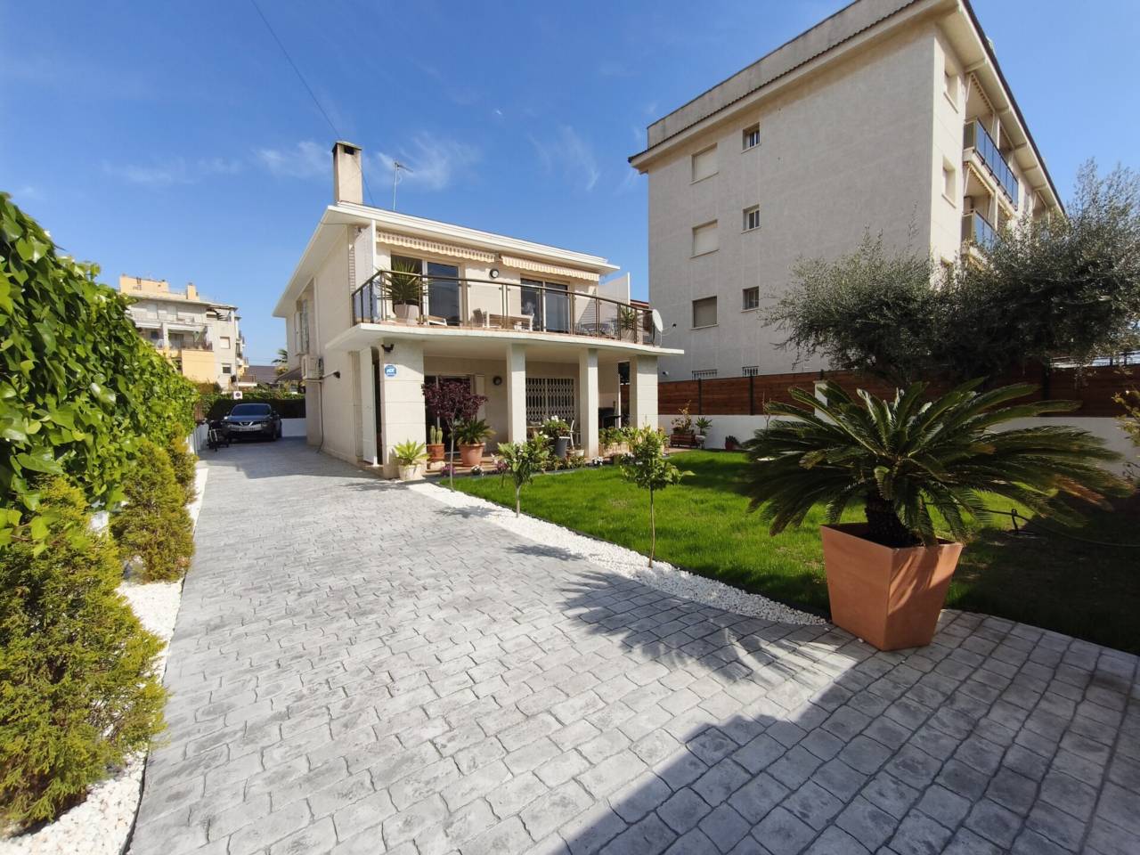 MAGNÍFICA CASA INDEPENDIENTE A UNA CALLE DE LA PLAYA DE CUNIT.CASFINCAS Presenta Magnífico chalet independiente a una calle de la playa de Cunit, la vivienda de 212 m2, está construida sobre una parcela de 400 m2. La propiedad se distribuye de la siguiente forma En la zona exterior delante de la casa tenemos un amplio porche y un precioso jardín, garaje de buen tamaño con trastero, para entrar con el vehículo a la propiedad tiene puerta automatizada con mando. Entrando por el vestíbulo a la casa, encontramos un gran salón-comedor con dos balconeras de acceso al porche, cuenta también con doble puerta de acceso entre comedor y cocina en caso de que se desee comunicar los dos espacios de forma abierta, la cocina está equipada y cuenta con lavadero_galería, y un correcto baño con plato de ducha. En la pta. superior cuenta con cuatro habitaciones dobles con armarios empotrados, una de ellas es suite con baño privado y salida a gran terraza tiene vistas al mar, la habitación contigua a la suite también tiene salida a la misma terraza, otro baño con bañera en la distribución. La casa cuenta con carpintería exterior de aluminio, suelos de gres, aire acondicionado con bomba de calor 3 splits en toda la casa. La ubicación es excelente a una calle de la playa de Cunit y muy cerca de todo tipo de establecimientos y servicios, supermercados, gimnasio, institutos, médico CAP, etc. Gastos de ITP, notario y registro, NO incluidos en el precio.