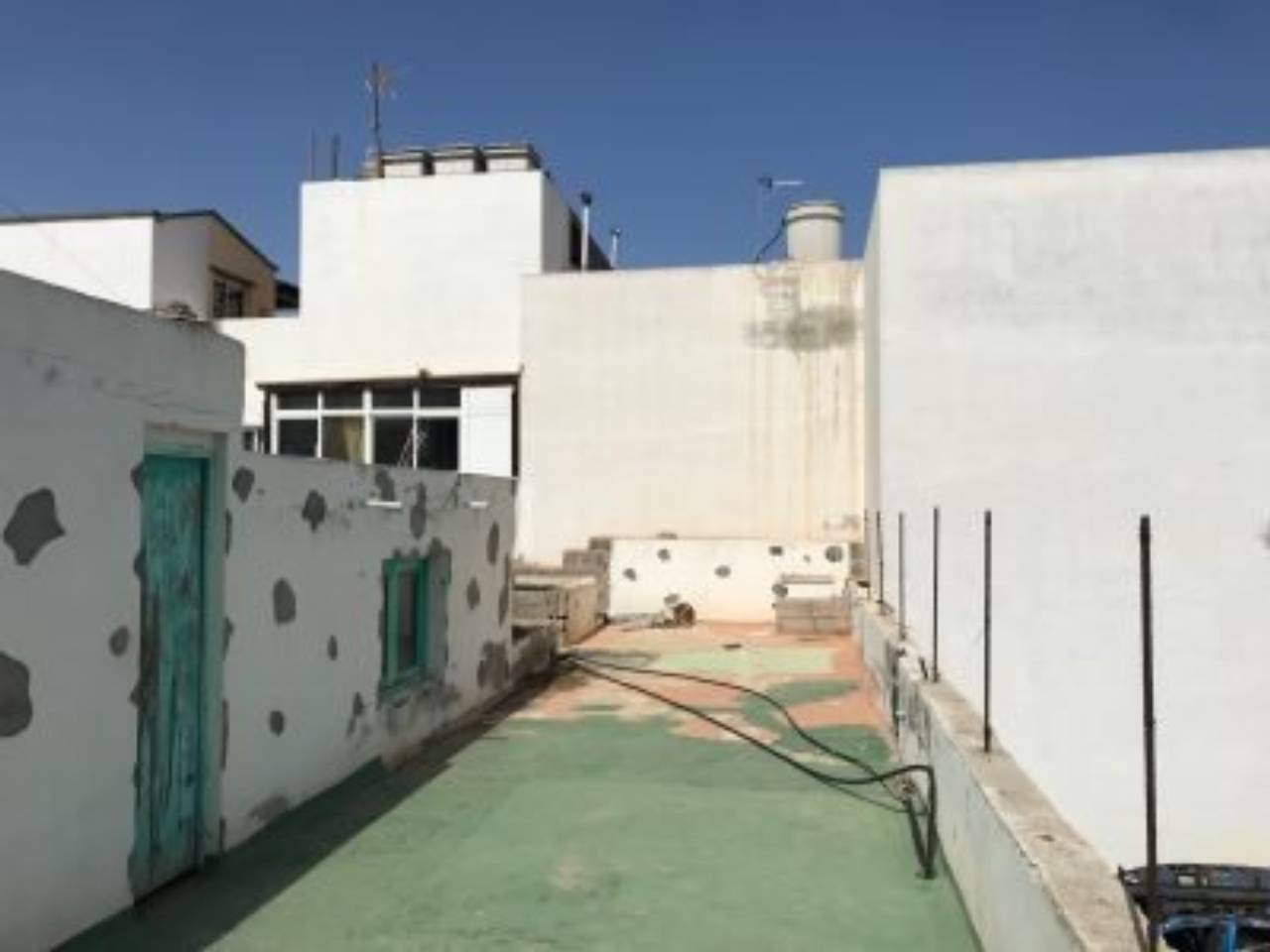 .Se vende casa antigua en el centro de Corralejo a reformar. Tiene 120m2 de superficie y toda la pta. baja esta construida. Tiene varios espacios como dormitorios, 2 baños, patios, garaje, almacén. Necesita de una reforma. Posibilidad de costruir mas alturas y tener un buen edificio en el centro del pueblo..