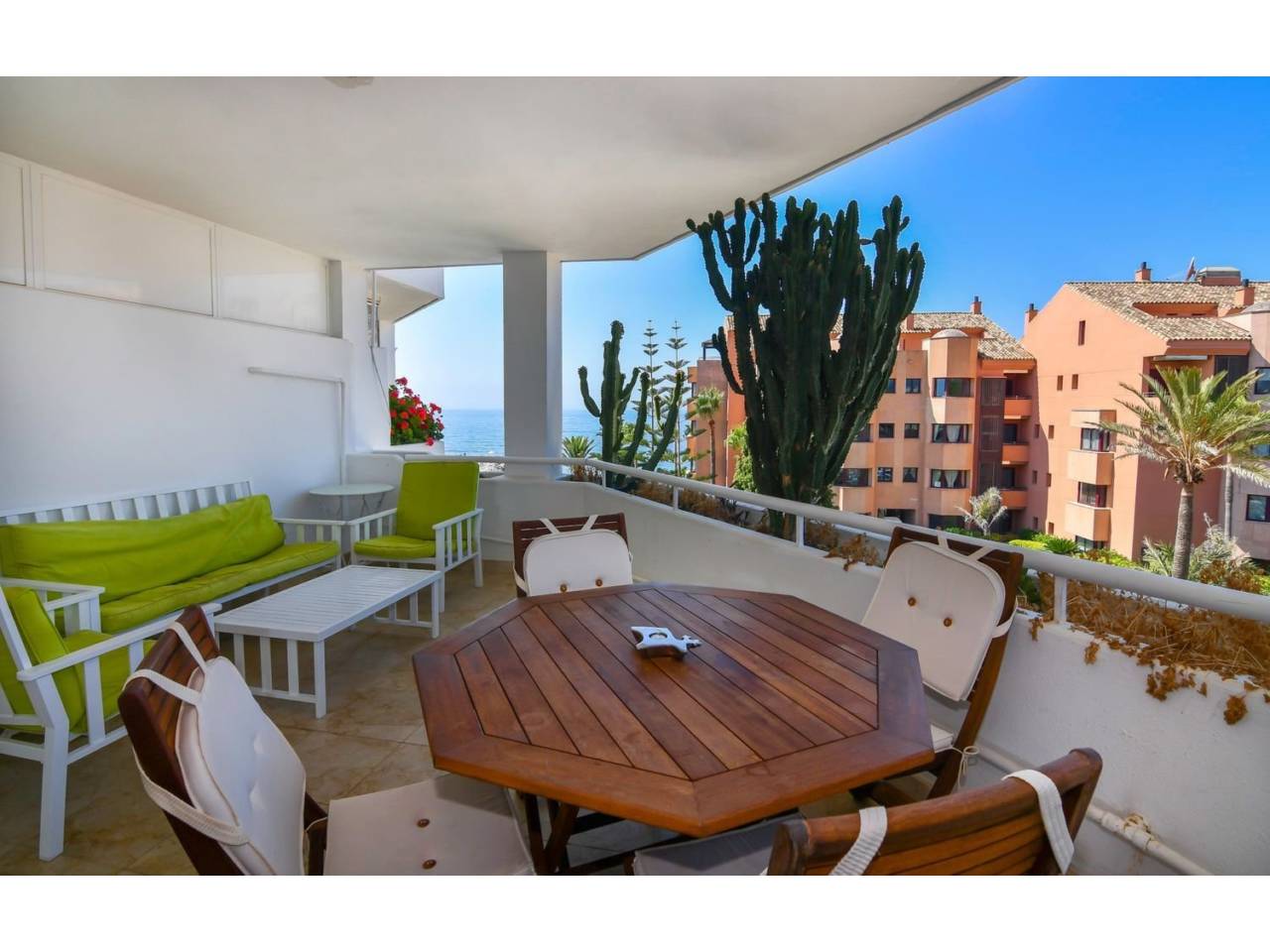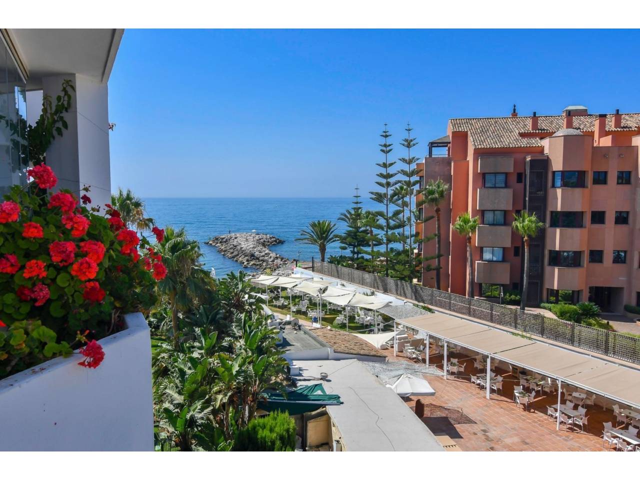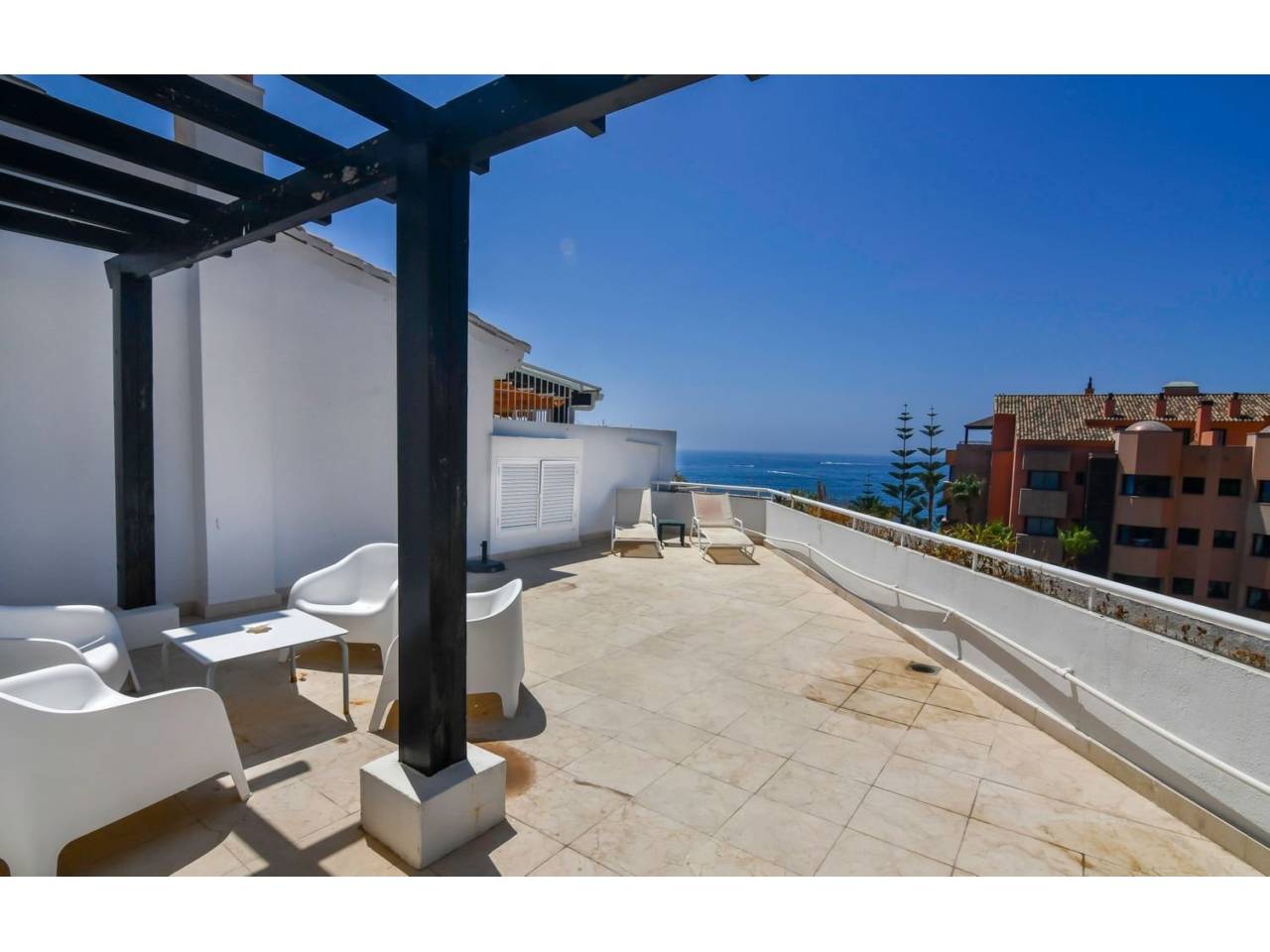 .Impresionante ático dúplex en La Herradura, una exclusiva urbanización en primera línea de playa en Puerto Banús.Se encuentra junto al hotel de cinco estrellas Guadalpin Banús, y a diez minutos andando a Puerto Banús por el precioso paseo marítimo.El apartamento se distribuye en dos plantas en la primera encontramos un amplio salón-comedor con una gran terraza donde podemos disfrutar de unas impresionantes vistas al mar, una cocina independiente, dos habitaciones y un baño. En la segunda pta. tenemos la habitación principal, con baño en suite y vestidor, y la mejor parte, una terraza de más de cincuenta metros donde perderse con las inigualables vistas al mar. Además cuenta con suelo radiante en todos los baños.La urbanización tiene seguridad 24h.Plaza de garaje y trastero incluidos en el precio.