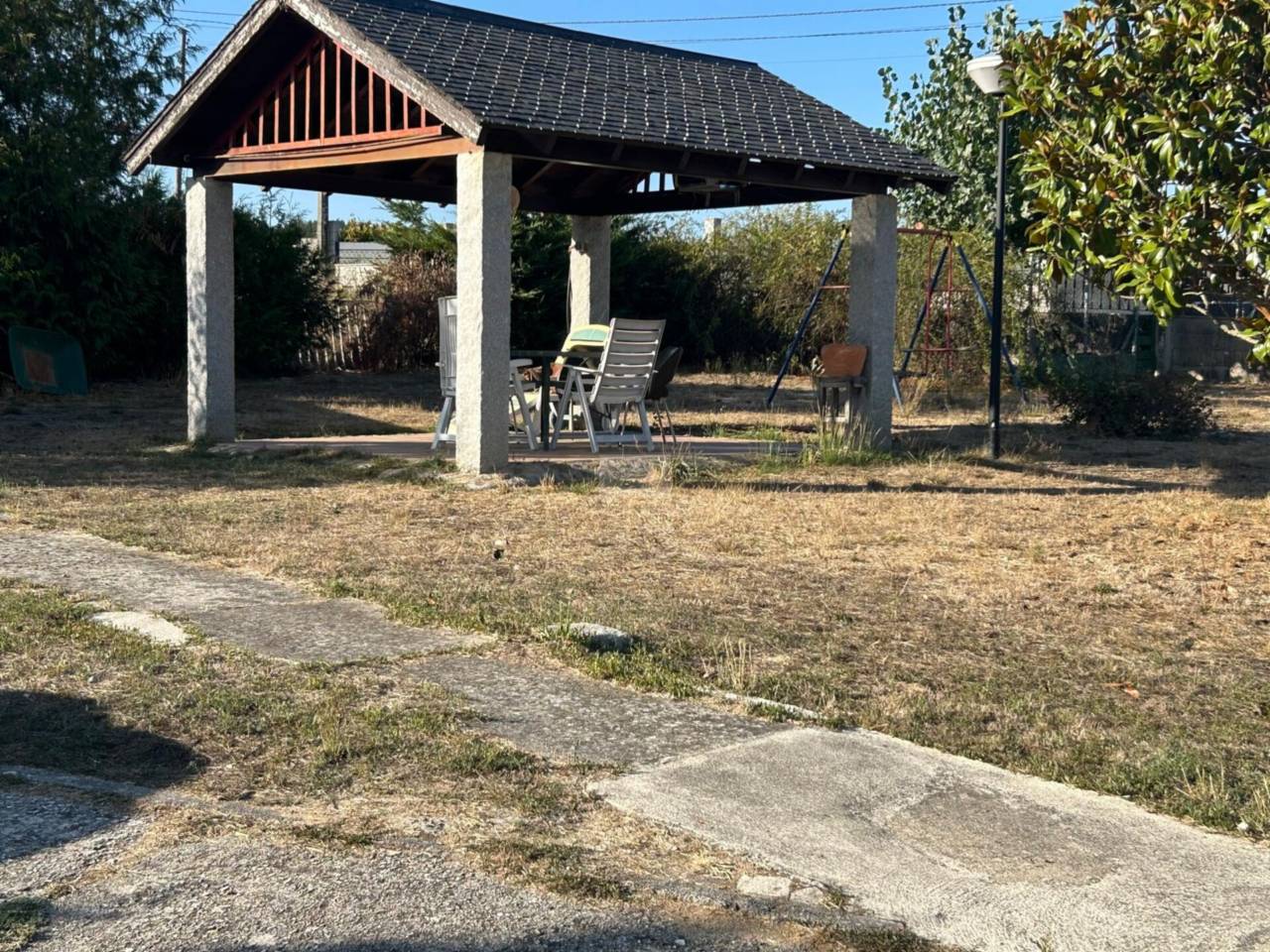 Venta de chalet unifamiliar en Monforte de Lemos.Magnífico chalet independiente con una superficie total de 303 m, situado en una parcela cerrada de 2.254 m con jardín privado y múltiples comodidades.La vivienda se distribuye en cinco amplias habitaciones dobles, dos baños completos, dos cocinas equipadas, salón con chimenea y calefacción de gasoil.Dispone además de garaje cerrado, zona de aparcamiento exterior con capacidad para tres vehículos, pozo propio y un acogedor cenador, ideal para disfrutar del jardín en cualquier época del año.Ubicada en una zona tranquila, con buen acceso a servicios, comercios y vías principales, esta propiedad ofrece comodidad, espacio y privacidad, perfecta como residencia habitual o vivienda de descanso.