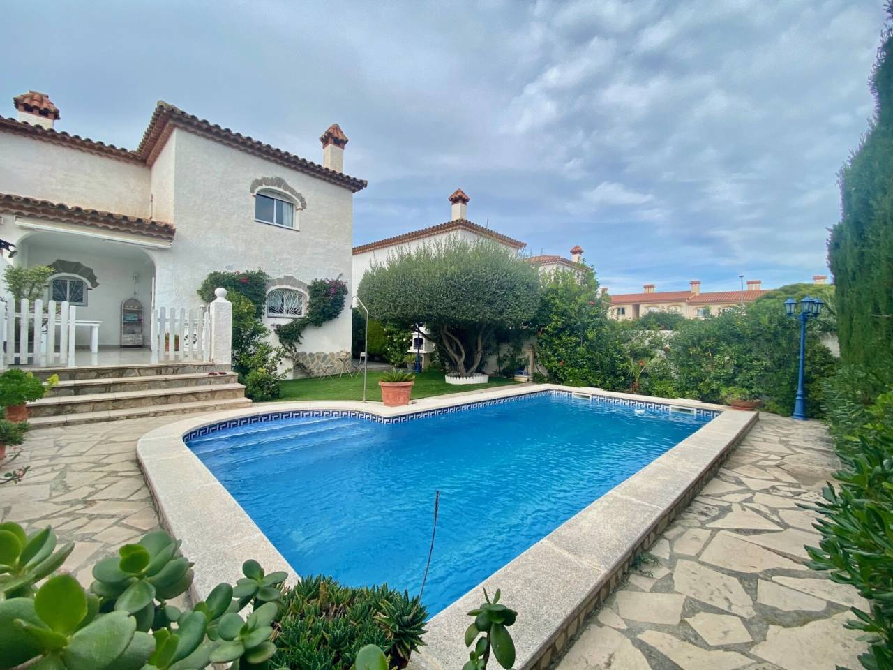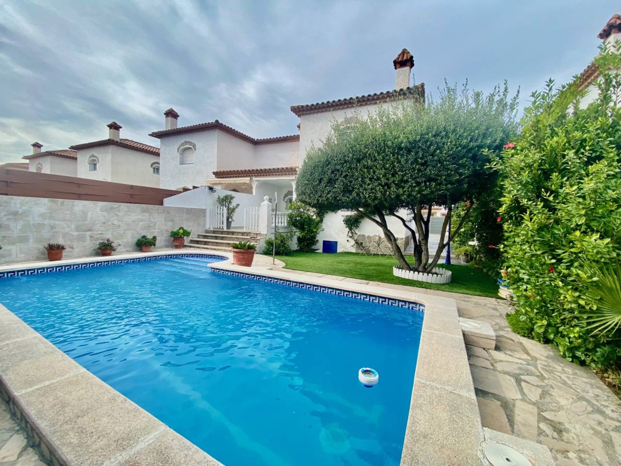 Pareado tiene piscina privada situado a 300 metros de la playa..Pareado tiene piscina privada situado a 300 metros de la playa.Consta de 4 dormitorios 3 dobles con armarios empotrados y 1 individual, 2 baños completos, salón_ comedor, cocina independiente completamente equipada, terraza, garaje, zona diáfana en el subterráneo,jardín y piscina privada.Calefacción de gasoil, aire acondicionado en 1era planta, barbacoa, rejas, toldo.