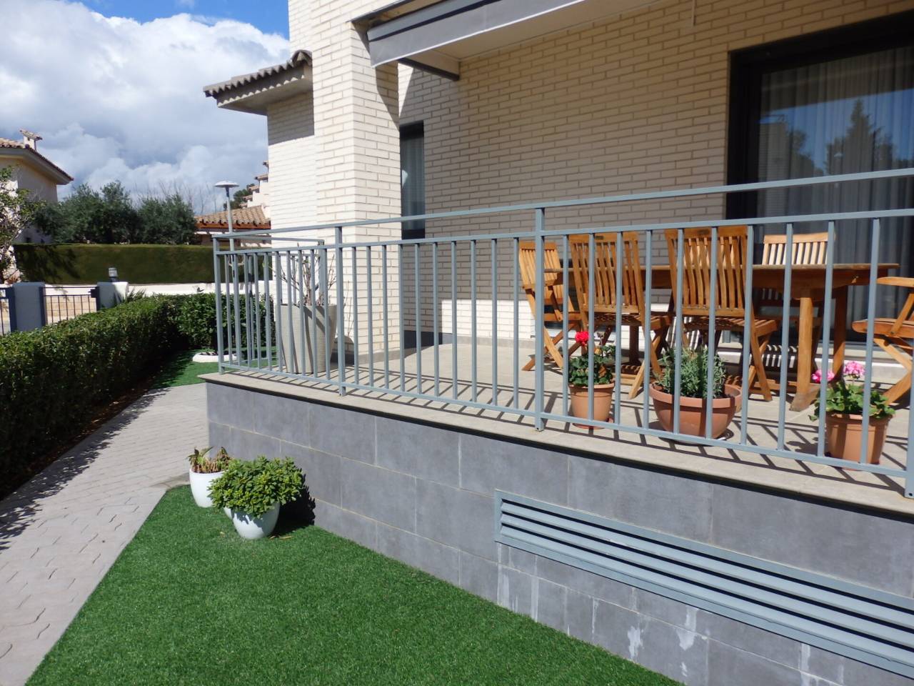 Chalet pareado en venta en Miami Platja.Moderno chalet pareado en la Urbanización Pino Alto con jardín privado. Se componen de 3 plantas, en la pta. baja se encuentra un salón comedor con salida a una terraza, cocina independiente, una habitación y un baño. En la pta. primera se encuentra la habitación suite con baño y terraza y 2 habitaciones con otro baño. En la pta. sótano encontramos un garaje para 2 coches y un sala de lavado. La vivienda tiene aire acondicionado por conductos frio_calor.