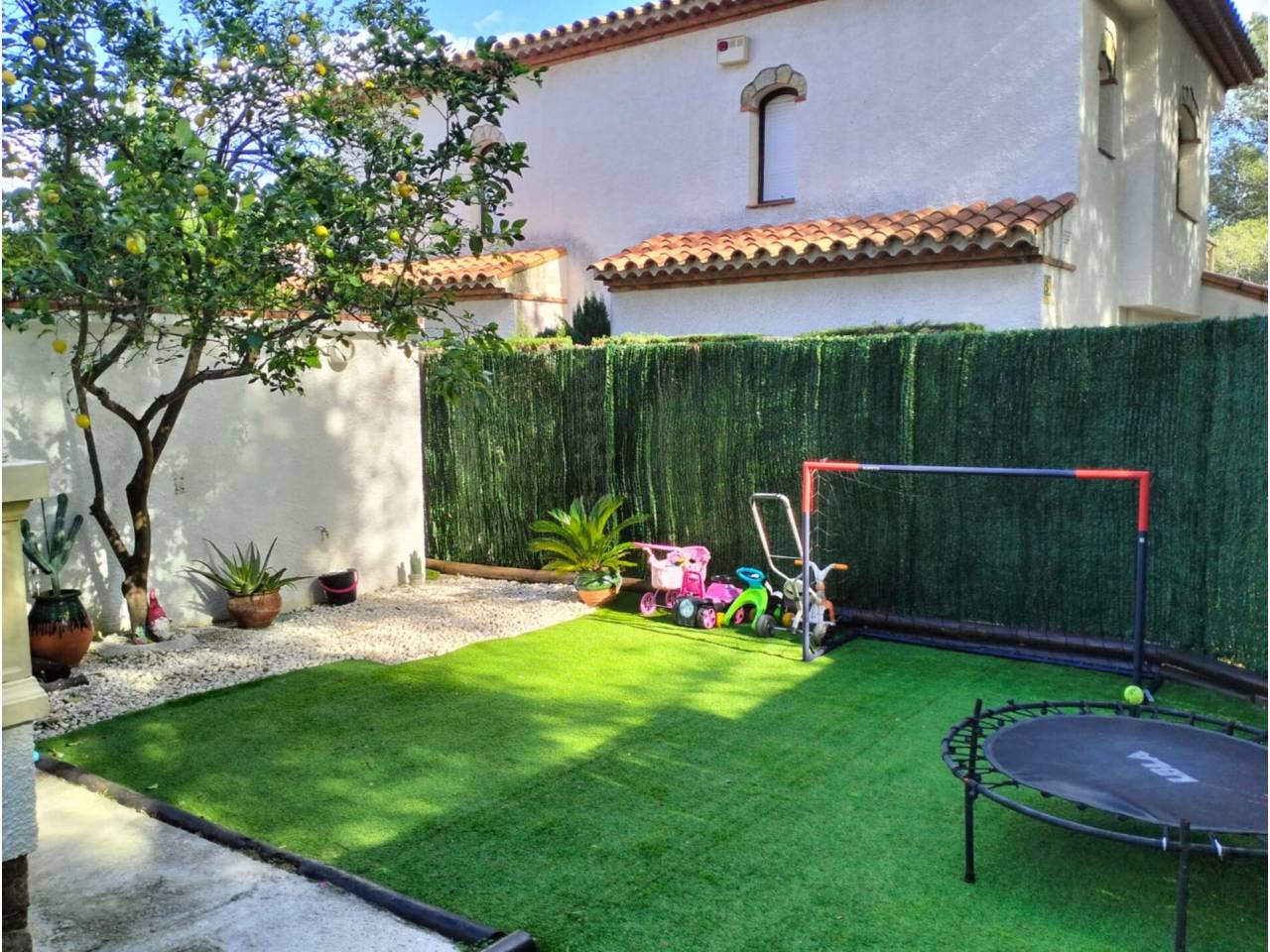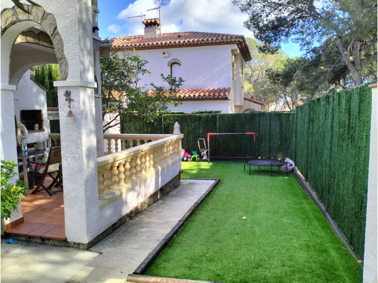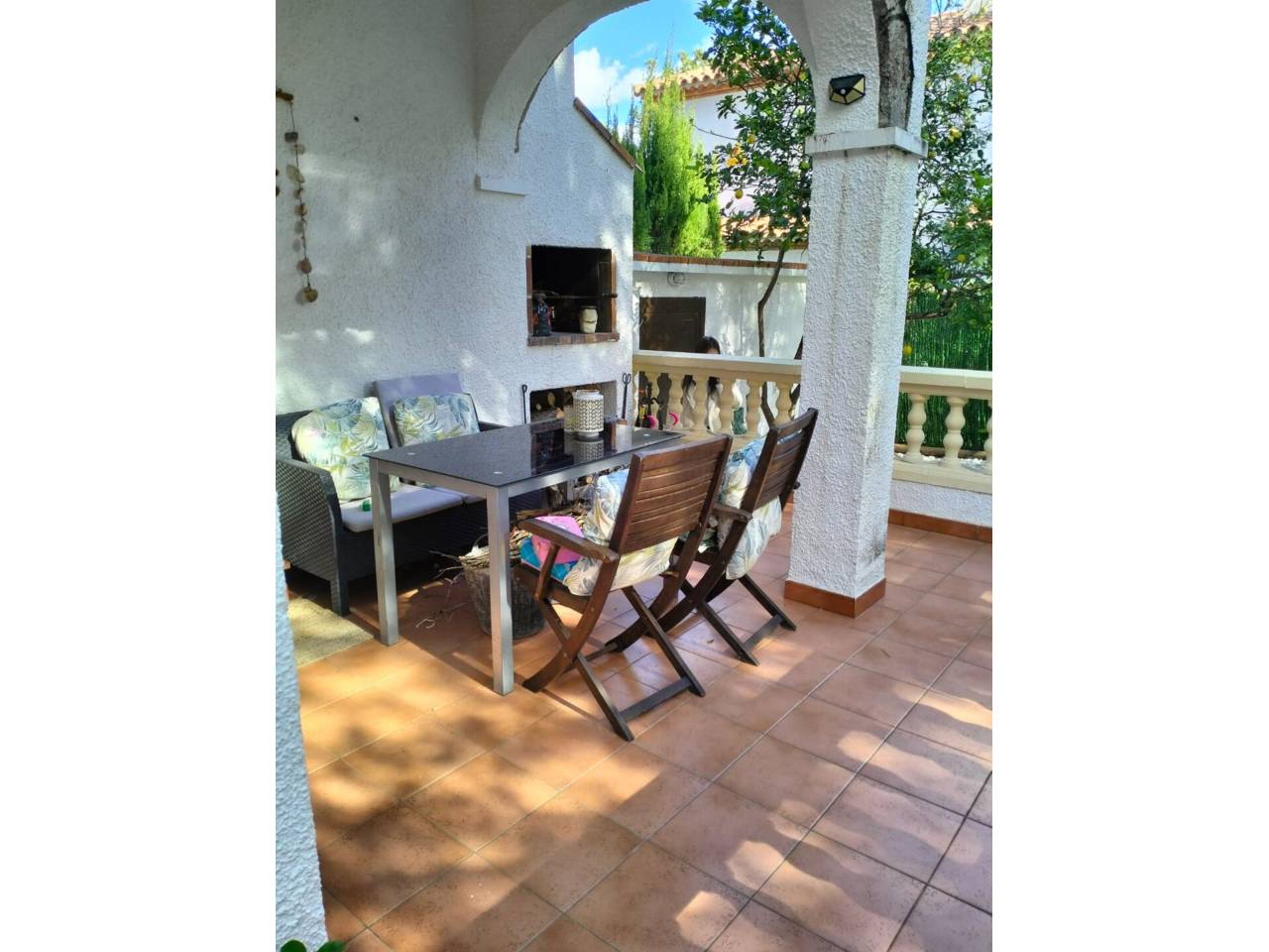 Castellet.Acogedora casa distribuida en dos plantas, ideal tanto como vivienda habitual como segunda residencia.En la pta. baja encontramos una cocina americana abierta al iluminado salón-comedor con chimenea, un dormitorio, un baño completo y acceso directo a una agradable terraza. Dispone de aire acondicionado para mayor confort.En la primera pta. se ubican dos dormitorios, un baño completo y una terraza adicional perfecta para disfrutar del aire libre.La vivienda cuenta además con jardín privado, trastero y plaza de parking. Forma parte de una zona comunitaria con piscina, ideal para relajarse y disfrutar en familia.