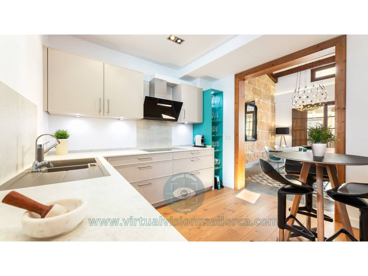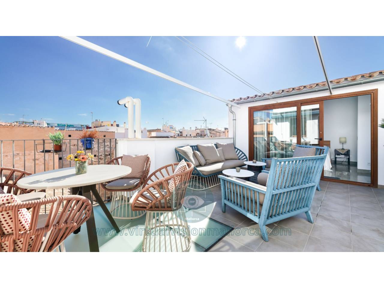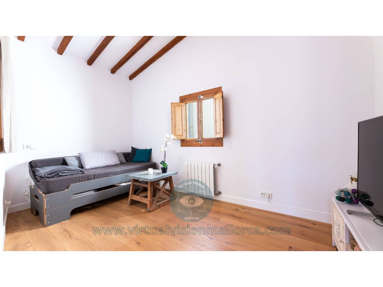 Duplex en venta en Cort.Propiedad impecable con un diseño contemporáneo que incluye todas las comodidades. Situado en el corazón del casco antiguo en una calle tranquila, cerca del Mercat de lOlivar y la Plaza Mayor, este ático dúplex también está cerca de las principales zonas de compras de lujo y la variedad de ofertas gastronómicas que se encuentran en Palma. En el tercer piso del edificio típicamente mallorquín, este iluminado ático dúplex ofrece techos altos y vigas expuestas. Los 209 m2 construidos se dividen en dos plantas. La pta. inferior, de aproximadamente 140 m2, cuenta con una amplia sala de estar y comedor combinados con una escalera que accede a la terraza de la azotea y la vivienda separada situada allí. Hay una Schuller cocina completamente equipada, un dormitorio principal con baño en suite y un dormitorio con baño independiente. La espaciosa terraza en la azotea se accede por las escaleras de acero en la sala de estar y ofrece una espléndida vista sobre el casco antiguo de Palma. A través de la terraza, hay una vivienda separada con una pequeña cocina y un baño, que tiene un acceso independiente, lo que la hace perfecta para los visitantes. Todos los baños tienen calefacción por suelo radiante, hay radiadores en todas las habitaciones, aire acondicionado central y ventanas de doble acristalamiento. Los suelos de madera y los suelos de baldosas hidráulicas preservados complementan este cómodo y exclusivo ático. El gran garaje 96 m2 en dos plantas ubicado en el mismo edificio tiene instalación de agua caliente y un baño. Es posible instalar un elevador de coches para dar cabida a dos coches. Una propiedad ideal y una inversión de primera en el corazón del casco antiguo de Palma.
