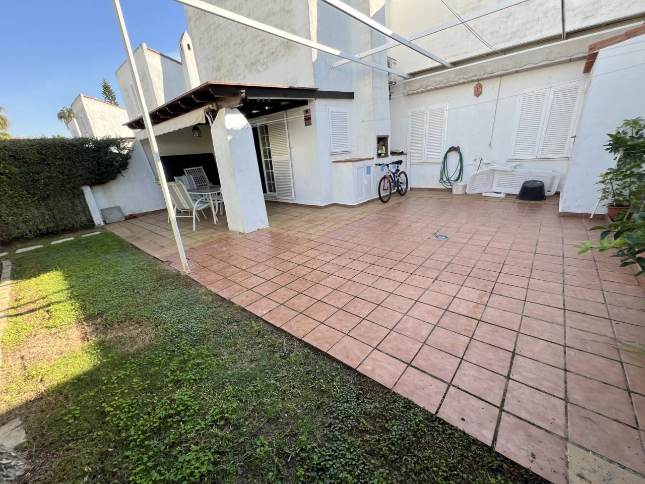 ADOSADO SIN ESCALERAS. ZONA GOLF.EN EXCLUSIVA - AVENIDA REINA SOFIA- GOLF COSTA BALLENA - Adosado de 2 dormitorios y 2 baños, cocina independiente, amplio salón con chimenea, TODO EN UNA SOLA PLANTA SIN ESCALERAS, jardÍn privado con barbacoa. Por la gran altura a los techos de esta vivienda, permite fácilmente construir un altillo para hacer hasta dos dormitorios más.OPCION DE. 1 GARAJE SIN TRASTERO 20.000euros o 1 GARAJE CON TRASTERO 25.000 euros subterráneo con fácil acceso a la vivienda.La urbanización tiene 2 piscinas y mucha zona ajardinada perfectamente mantenida.Frente al Hotel Barceló y junto al Club de Golf Costa Ballena. Rodeado del Campo de Golf y a solo 180 metros de la playa.Todos los gastos e impuestos que ocasionen la compra de este inmueble y honorarios de mediación no están incluidos en el precio ofertado. SAILING COAST INMOBILIARIA.-IBI 440 EUROS AÑO. - COMUNIDAD. 115 EUROS MESPOSIBILIDAD DE REALIZAR UNA VISITA CONCERTADA INCLUSO SÁBADOS Y DOMINGOS CON CITA PREVIA.