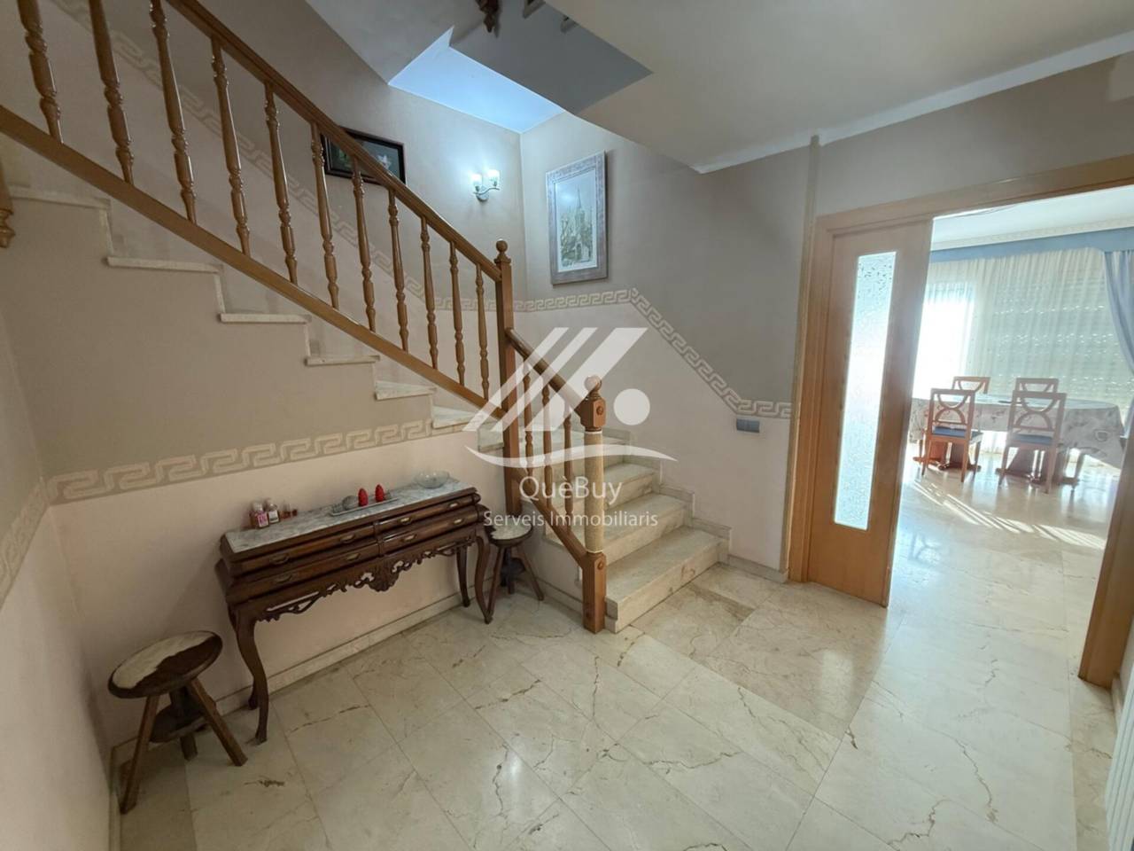 Casa en venta en Valls.QueBuy Serveis Immobiliaris comercializa la venta de esta amplia casa adosada en Valls.Vivienda de aproximadamente 384 m construidos, situada cerca del centro y distribuida en varias plantas con espacios amplios y funcionales.Distribución- 3 habitaciones 1 doble con vestidor y baño en suite, y 2 individuales - Amplio salón-comedor con salida a balcón - Cocina independiente con salida a terraza - Despensa - 2 baños completos - Recibidor - Gran buhardilla acondicionada como zona de estudio y lavaderoZona exterior y anexos- Patio con zona de barbacoa, con acceso desde el garaje y desde ambas plantas superiores - Garaje espacioso con zona de trastero y un aseoCaracterísticas- Carpintería de aluminio - Suelo de gres - Calefacción por radiadores - Splits de aire acondicionado frío y calor en varias estancias - Vivienda completamente exterior, muy luminosa y soleadaUbicación A pocos minutos a pie del centro de Valls, en una zona tranquila y bien comunicada.Posibilidad de financiación hasta el 100. Consulte condiciones sin compromiso.Contacto Teléfono _ WhatsApp 647 717 893 629 414 666