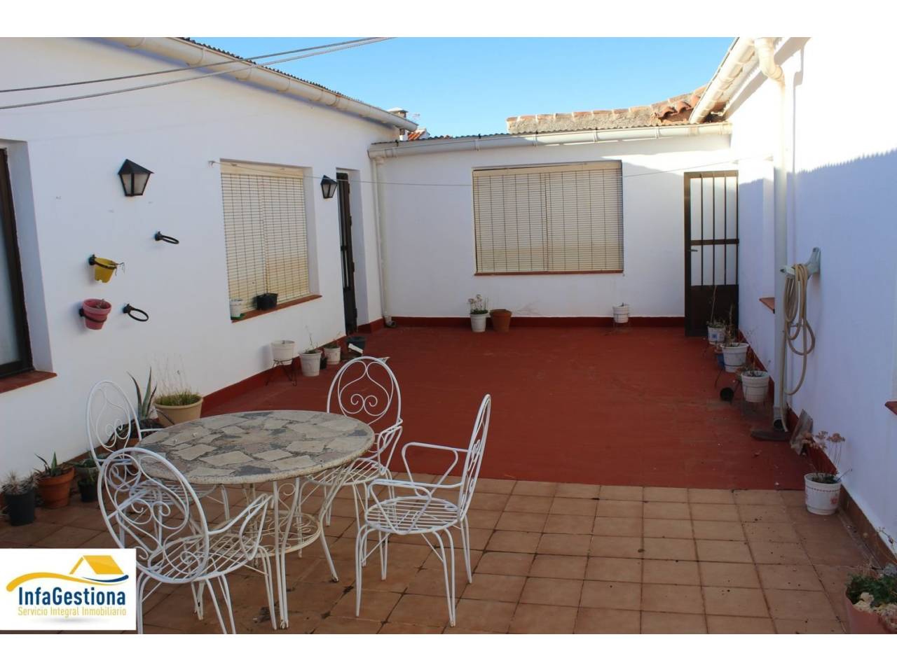 .Vivienda situada en zona muy centrica en perfecto estado de conservación cuenta con6 Dormitorios uno de ellos con wc completoSalon ComedorDespachoCocina completamente amueblada mas despensaBaño completo.Habitacion de planchaGran patio de 80 mts.Cocina con chimenea y baño.Cochera de mas de 200 mts.