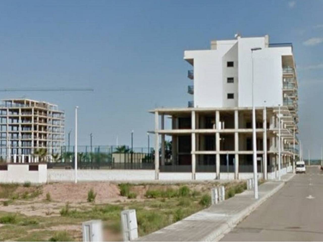 Edificio de obra parada en construcción en Playa de Moncofa..Edificio de obra parada en construcción en Playa de Moncofa, en zona residencial turística en expansión, con todo tipo de servicios cercanos, bien comunicada mediante la AP-7 y N-340 y a 20 min. de Castellón, 30 min. de Valencia, a 3 h. de Zaragoza y a menos de 4 h. de Madrid. Cuenta con 5.706 m2 de construcción 3.569 m2 destinados a viviendas y 2.137 m2 destinados a garajes y trasteros. Se ubica sobre un solar con fachada a cuatro calles, ubicado a 400 m. de la playa y tiene zonas comunes con zona deportiva y piscina comunitaria. Tipología Edificación aislada. Número alturas BVIAtico. Para la promoción de complejo residencial de 54 viviendas 44 Ud. de 2 dormitorios, 6 Ud. de 1 dormitorio y 4 áticos con terraza, 73 plazas de garaje y 7 trasteros. Porcentaje de obra ejecutado 17. Con división horizontal inscrita. Oportunidad.