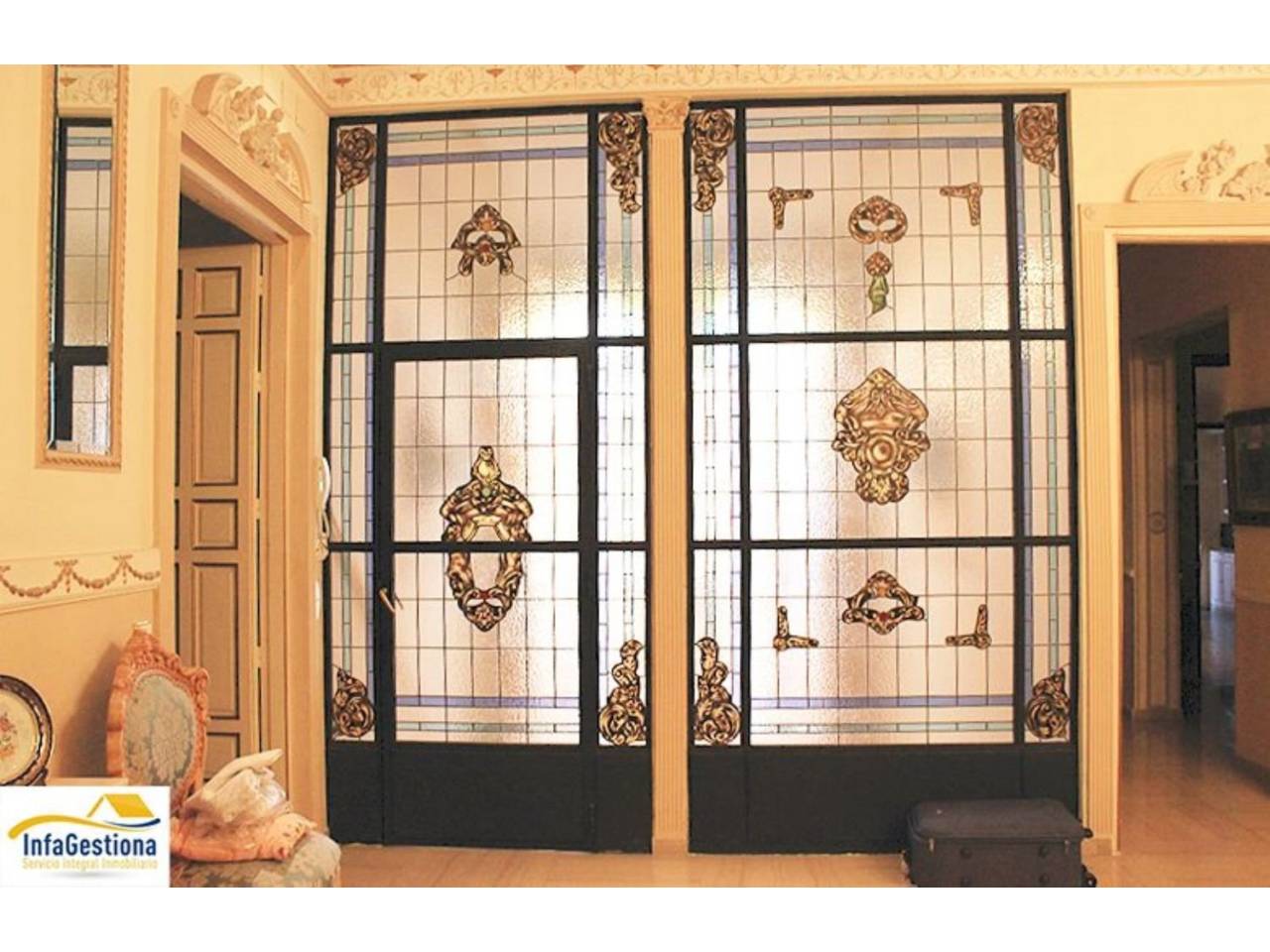 .InfaGestiona presenta la venta de esta preciosa casa señorial en el centro de Valdepeñas, reformada y decorada de lujo con dos locales comerciales anexos a la vivienda.La vivienda tiene habitaciones grandes y luminosas, suelos de mármol, escayolas, puertas y ventanas originales restauradas, calefacción y agua caliente central por gasóleo, calentador de agua eléctrico en los baños por si no se quiere hacer uso de la caldera, cuenta con instalación de hilo musical en toda la casa, y un hueco para la futura instalación de ascensor o montacargas.La escalera de subida a la 1 pta. es majestuosa con una altura de unos 7 metros y una gran vidriera que da al vestíbulo un toque de elegancia y le aporta luminosidad.Se distribuye enPlanta baja amplio recibidor y precioso salón de entrada con suelo de mármol ajedrezado, un gran despacho con ventana a la calle principal, baño completo con armario empotrado, salón campero con chimenea y acceso a un pequeño patio con fuentes, habitación infantil_estudio, sala de calderas y dos locales comerciales anexos con entradas independientes a la vivienda, perfectos para alquilar o abrir local comercial propio en el centro de la población. Ambos locales tienen la posibilidad de ser conectados de nuevo a la vivienda, uno de ellos es perfecto para ser transformado en cochera.1 pta. gran salón distribuidor decorado de época suelo de mármol, escayolas, luces empotradas, gran lámpara central, etc. , salón comedor con tres balcones, uno de ellos es un mirador cerrado que da a la calle principal, tres dormitorios dobles con suelos hidráulicos baldosas decorativas de cemento pigmentado, uno de ellos con baño en suite, cocina office con gran zona de comedor, baño completo con bañera circular y ducha, gran despensa y terraza con salida desde la cocina.2 pta. Gran zona de lavadero con tendedero interior, buhardilla perfecta para almacenaje y gran terraza superior.La casa también consta de un pequeño sótano ideal para tener una pequeña bodega.Esta increíble casa señorial, tiene una inmejorable ubicación, amplitud y además, todos sus detalles hacen de esta vivienda un espacio único.Si estás interesado en adquirir un inmueble de estas características no dudes en contactar con nosotros.