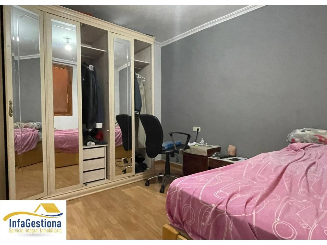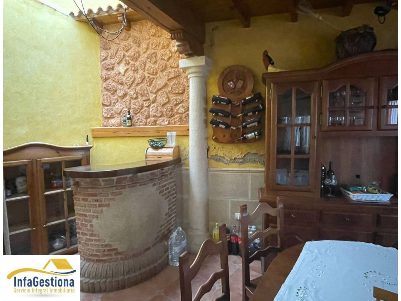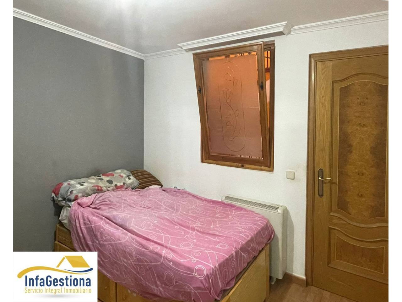.Infagestiona presenta vivienda en morada en venta, situada en calle céntrica del municipio, al lado de comercios y demás servicios. El acceso al inmueble se produce mediante patio común vecinal, una vez que estas en el interior de la vivienda es completamente privada y además cuenta con patio y terraza propios.La casa se distribuye en dos plantas de altura. La pta. baja cuenta con hall de entrada, dormitorio, baño completo con plato de ducha, cocina equipada y salón-comedor con chimenea y acceso al patio privado en el que existe un lavadero y están las escaleras que conducen a la terraza, también privada. La pta. alta tiene tres dormitorios y baño completo con bañera. La vivienda se encuentra en buen estado, todas sus estancias disponen de ventilación e iluminación natural e instalación de calefacción de electricidad y aire condicionado en dormitorio principal. Si estás interesado en el inmueble, no dude en contactar con nosotros, le atenderemos sin compromiso.