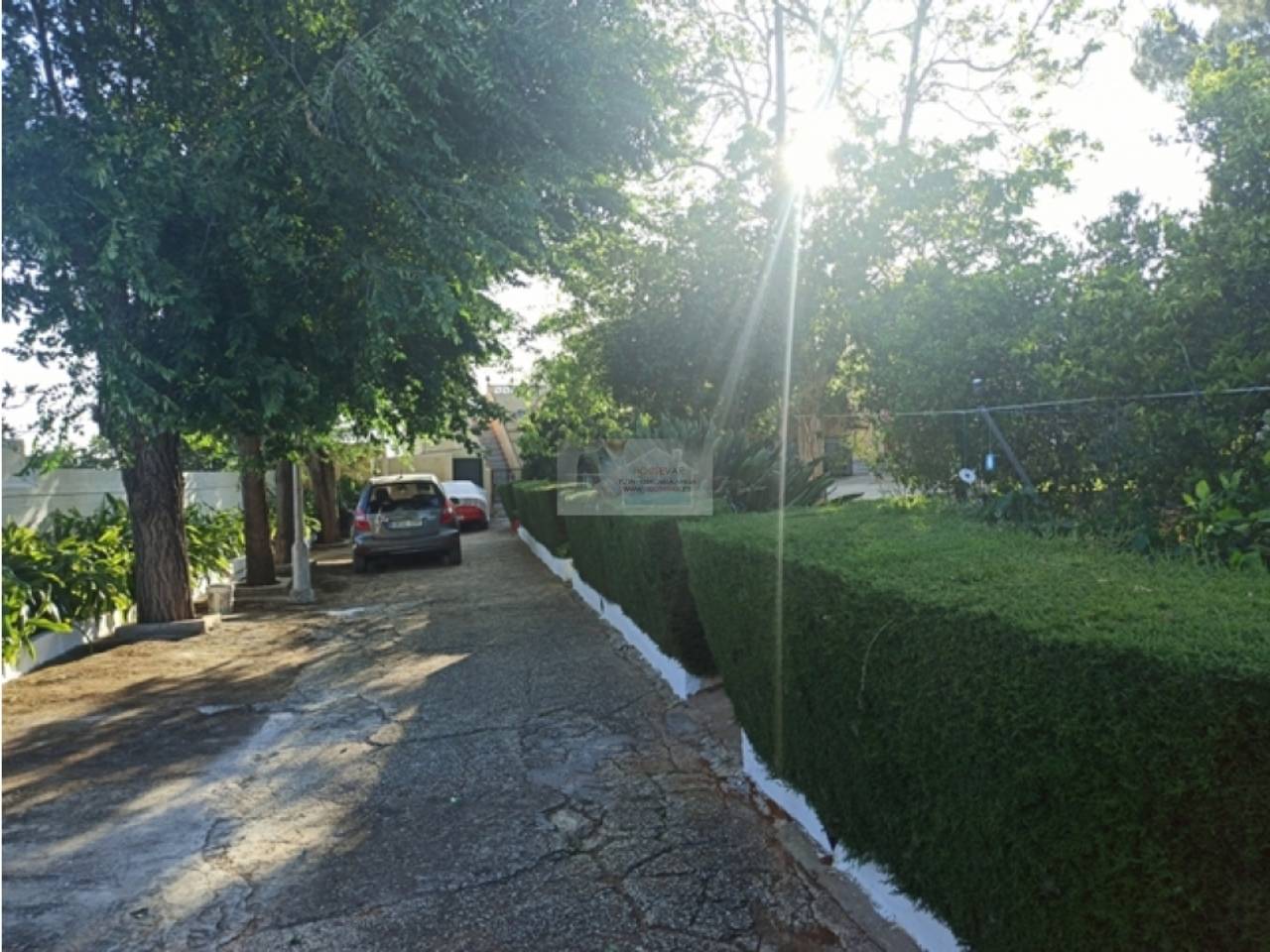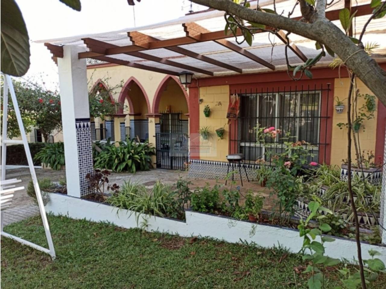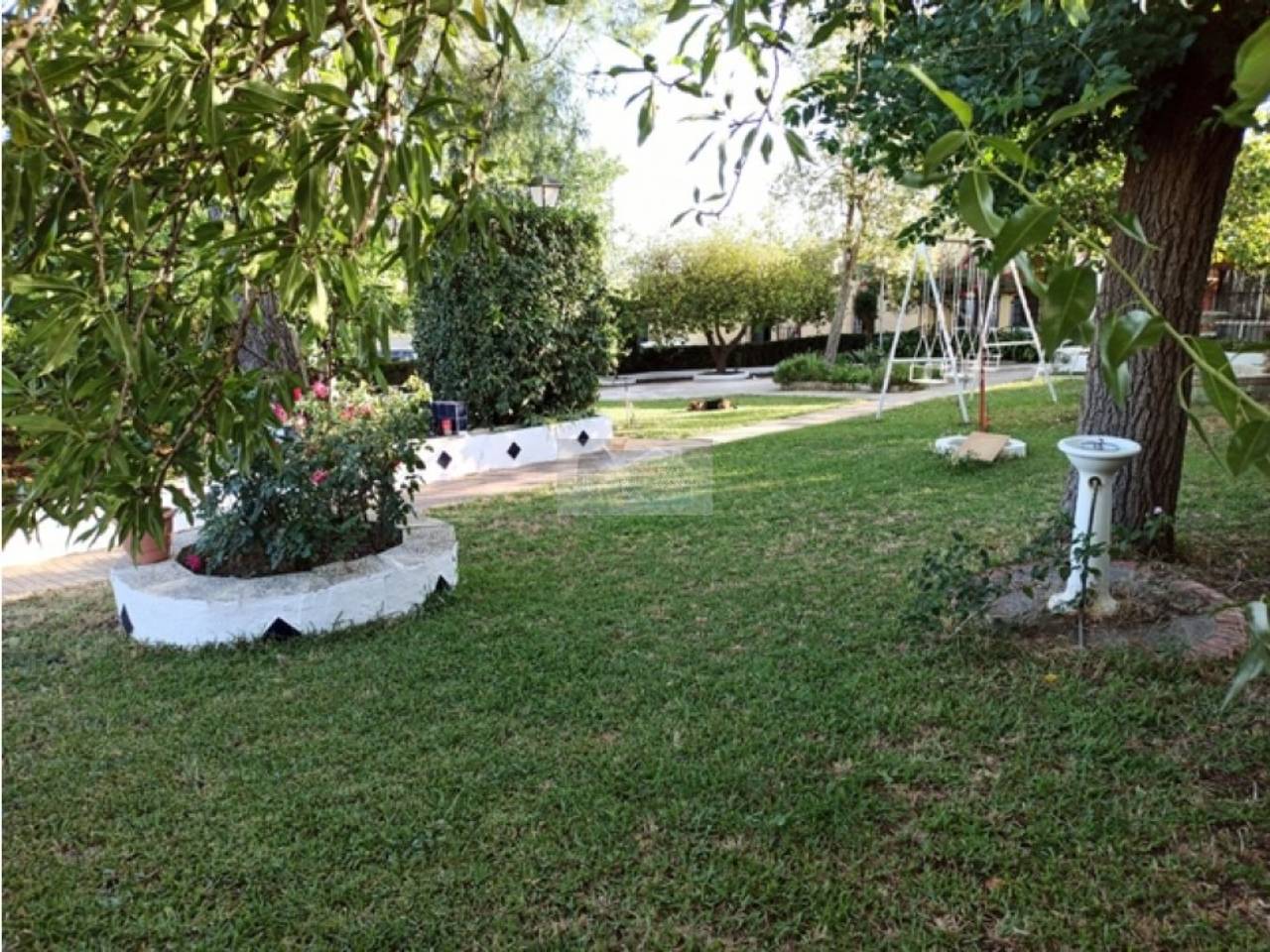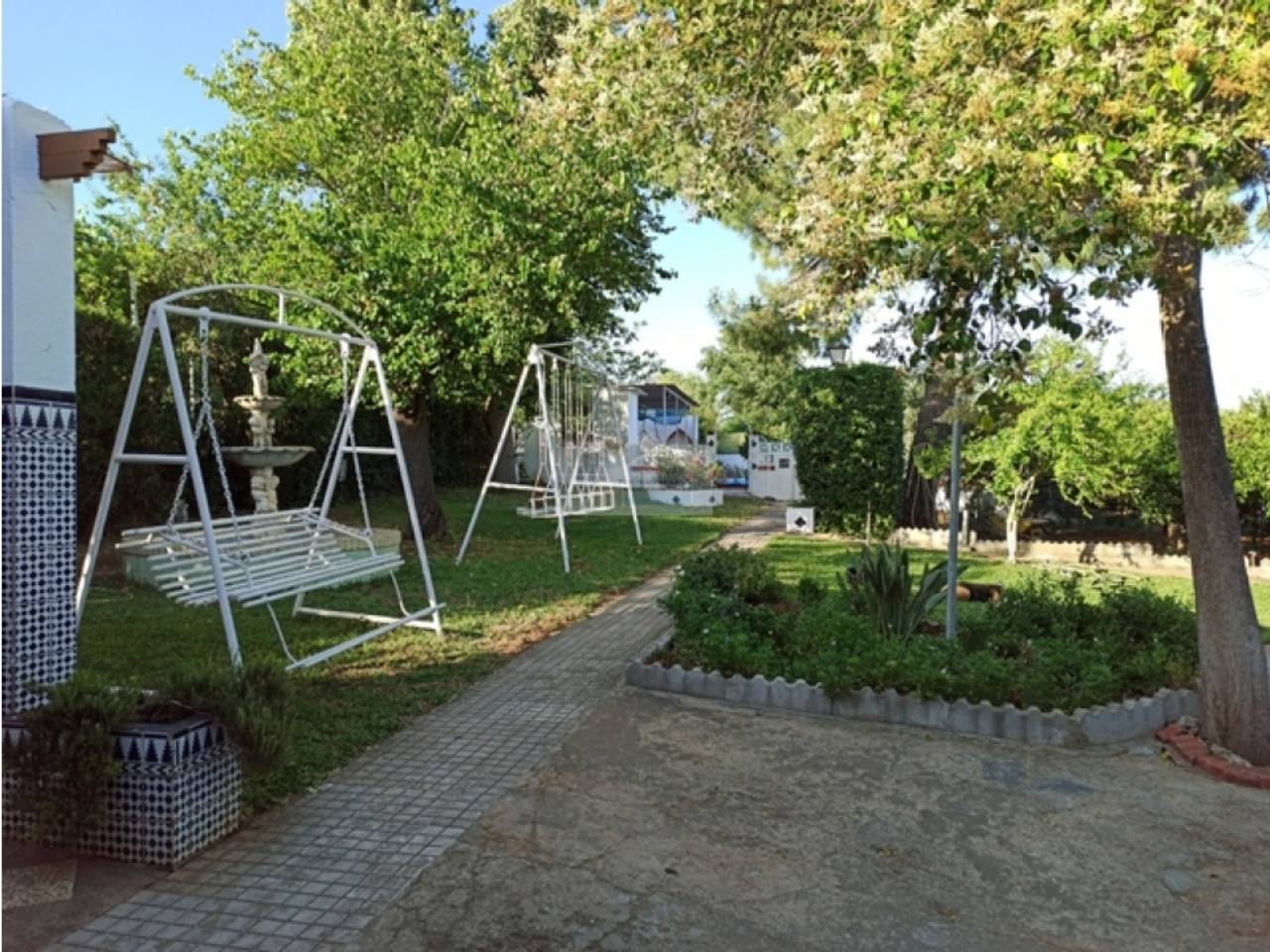 .Chalet en Urbanización Los Frutales del Alcor, urbanización más grande de la provincia con más de 400 parcelas y más de un tercio de ellas habitadas durante todo el año. La urbanización cuenta con hasta 4 bares, calles asfaltadas, entrada, parada de bus en la puerta, alumbrado, etc. Parcela de 2000 metros, completamente edificada Casa de unos 120m con 4 dormitorios, chimenea, aire acondicionado y ventiladores en todas las instalaciones, placas solares para el agua caliente, porche, merenderos, dos cuartos de aperos, box de caballo, trastero, habitación secadero o almacén en el castillete de la casa, pozo de abundante agua, corralón trasero, etc. La parte de la piscina es completamente independiente con wc propio, barbacoa, lavadero, frigorífico, depuradora. . . Gran cantidad y variedad de árboles frutales en la zona de huerto pino, níspero, más de 25 naranjos, olivos, acquis, ciruelos, manzanos, perales, ciruelos, cerezos, nogal, limoneros, mandarinos, higuera, granado, etc. Muchas flores ornamentales y todo ya bien criado, así como columpios y una amplia zona de césped. Se entrega amueblada y con todos los aperos del campo. Se puede estudiar una permuta por vivienda en Mairena del Alcor siempre y cuando no suponga desembolso económico por nuestra parte y se ajusten diferencias si las hay. Zona tranquila con buenos vecinos. Parcela no hipotecable, escrituras de la parcela si, la vivienda y el pozo no. No alquiler..