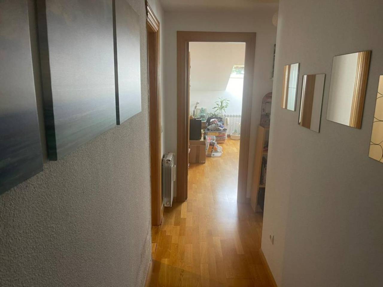 Piso en venta en Villalba Pueblo.GESTIONAMOS FINANCIACIÓN Y REFORMA HASTA UN 95 EN UNA SOLA CUOTA A PRECIO DE HIPOTECASolvia ofrece magnifico ático en venta en Villalba pueblo, se trata de una vivienda con una superficie construida de 70 metros, se distribuye en hall, salón comedor, cocina amueblada con muebles bajos, campana, vitrocerámica y horno, dos dormitorios, dos baños con bañera y plato de ducha, armarios empotrados revestidos, calefacción de Gas Natural, techos altos, ventanas tipo velux en toda la vivienda, suelos de tarima, pintura en liso. Finca con ascensor, plaza de garaje y trastero. Estupenda ubicación con todos los servicios a pie de calle, colegios, parques, ambulatorios, supermercados, farmacias, autobuses a Madrid y urbano.Collado Villalba está situado en un amplio valle en torno al río Guadarrama, y rodeado excepto por el sur por montañas entre 1000 y 2000 m s. n. m., que de oeste a este son sierra de Malagón, sierra de Guadarrama y sierra de Hoyo de Manzanares. El clima de la comarca es mediterráneo-continental templado y húmedo. El relieve de Collado Villalba está formado por llanuras, lomas y cerros, con la media y alta montaña presente en sus cercanías.