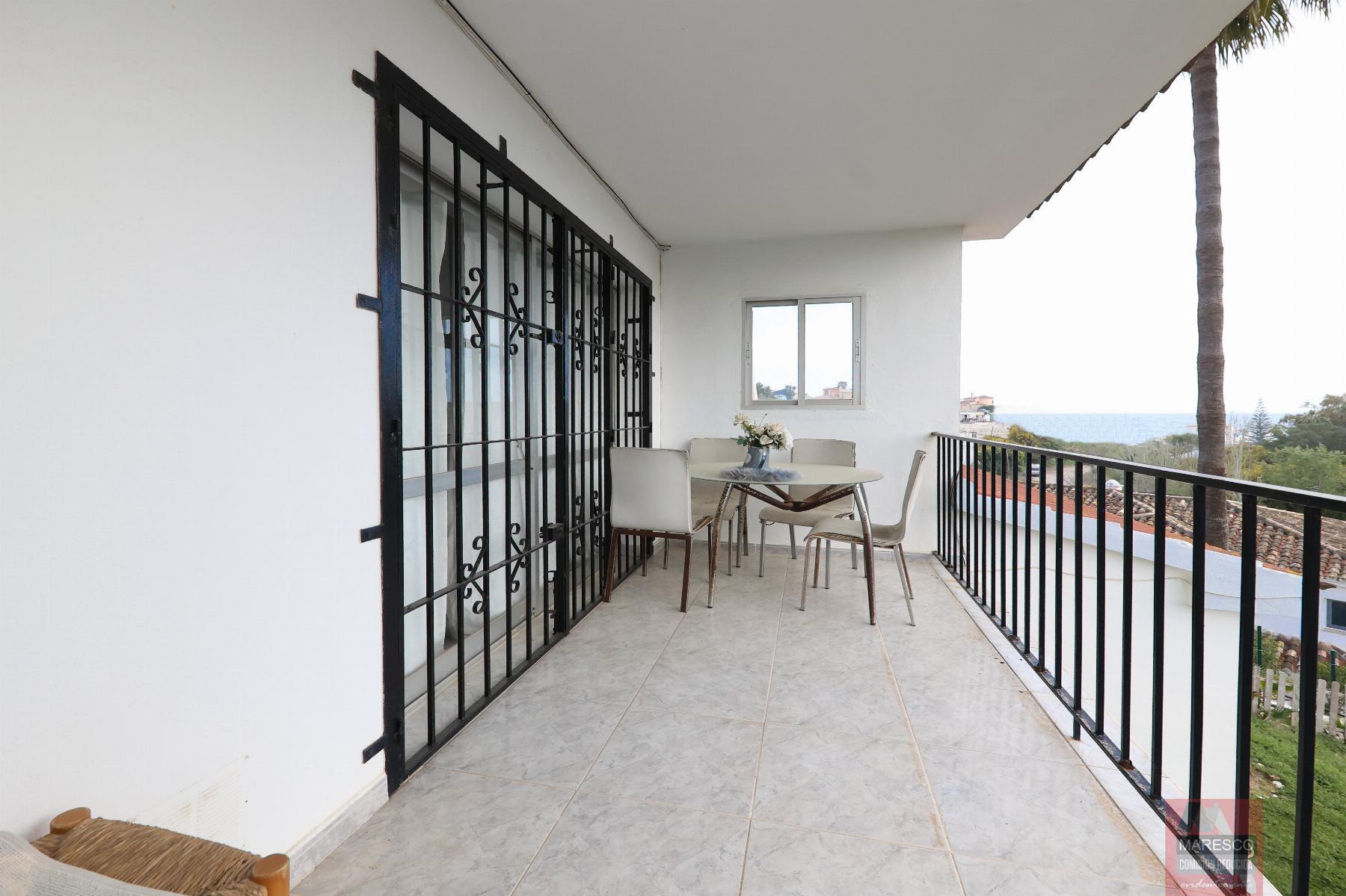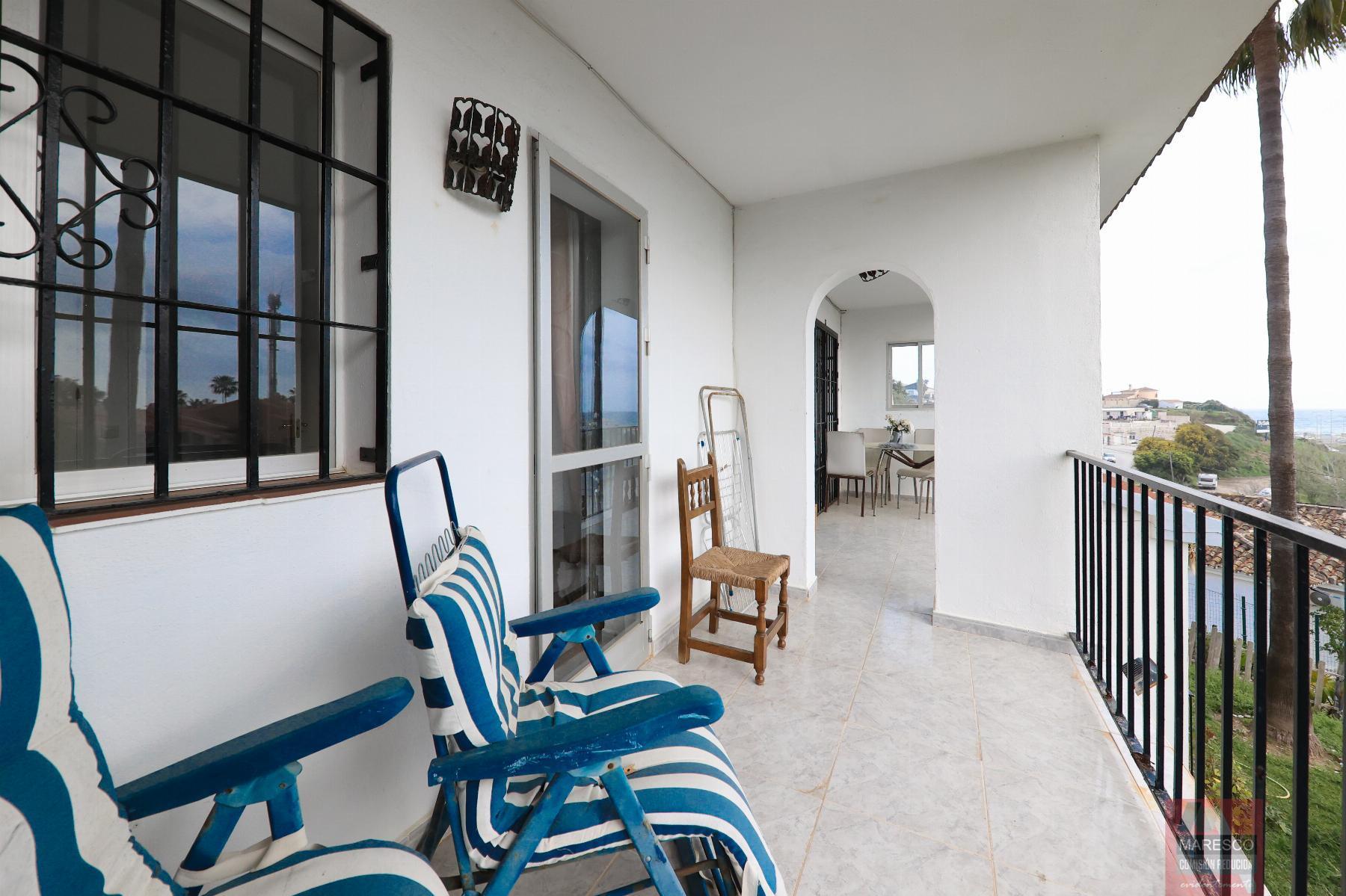 A la vivienda se accede mediante una escalera, y un porche descubierto, como es una esquina se puede disfrutar como una terracita. accedemos a la zona de la cocina, amplia independiente. luego el salón comedor con acceso a la terraza principal que goza de las vistas al mar. mediante un pasillo distribuidor con grandísimo armario, accedemos a los dos dormitorios, y un baño completo. Todas las estancias son exteriores, la habitación principal tiene salida a la terraza. La vivienda tiene mucho potencial y puede quedar un espacio de relajación muy bonito.