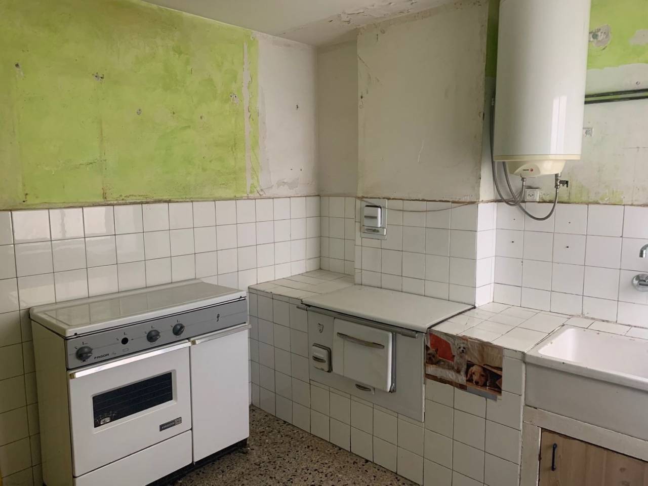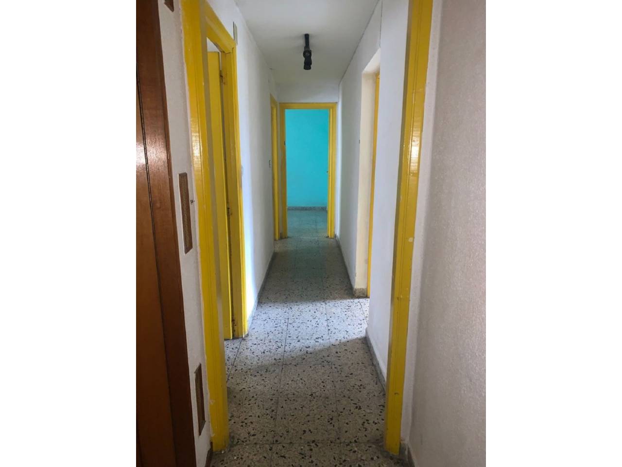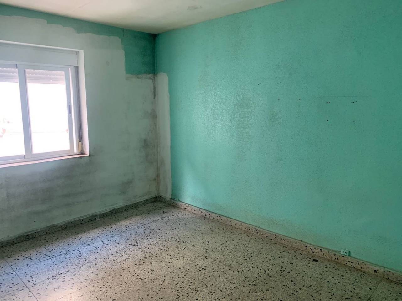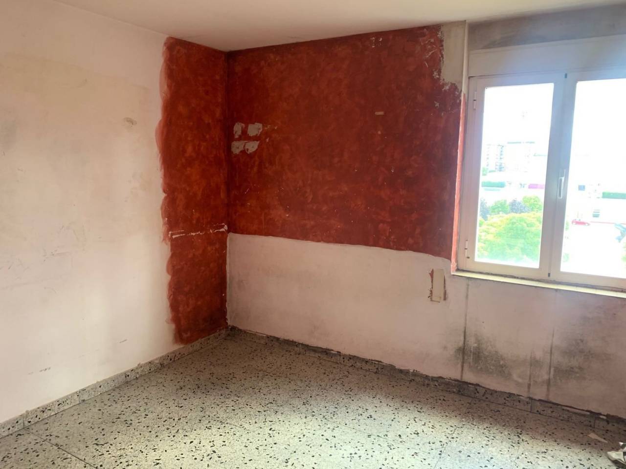 .Apartamento de 50 m2 para REFORMA INTEGRAL salvo ventanas de 2 dormitorios, salón, cocina y baño.Los suelos son de terrazo, las ventanas de aluminio y las puertas de madera hueca.El apartamento no tiene humedades, está deteriorado por la condensación generada por la calefacción de una estufa de gas.Muy soleado y EXCELENTES vistas al Parque de la Plaza de la Constitución.
