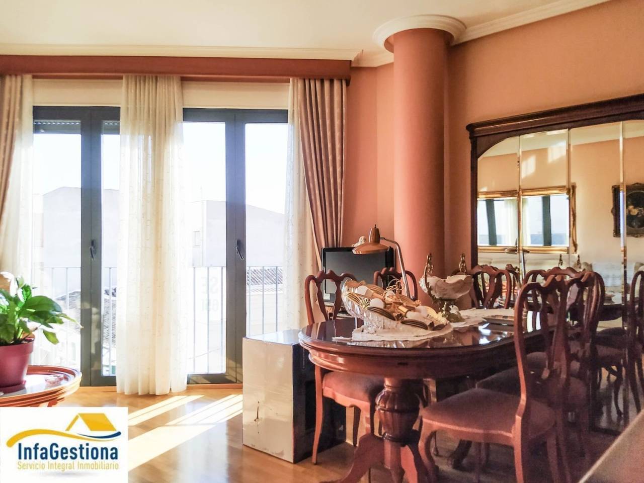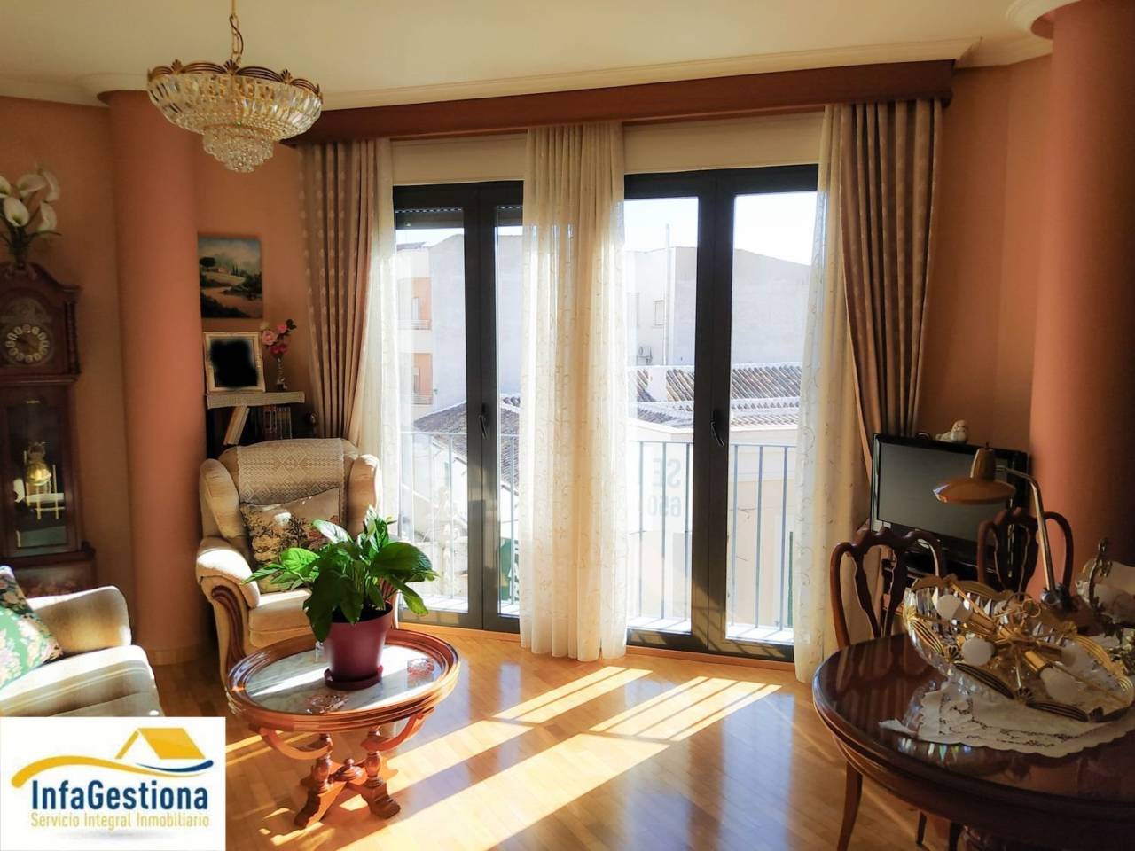 Piso en venta en Valdepeñas.Infagestiona vende estupendo piso, preparado para entrar a vivir en pleno centro de Valdepeñas, cercano a la zona comercial, a supermercados, colegios, negocios de restauración, etc.El piso tiene un salón muy luminoso, gracias a su balcón en la esquina de dos de las calles más principales de la localidad, cocina amueblada que cuenta con una terraza cerrada que se utiliza como lavadero y zona de almacenaje, tres dormitorios con grandes armarios empotrados y dos baños con plato de ducha.El piso es completamente exterior y todas las habitaciones disponen de luz natural y ventilación, el suelo de madera se encuentra en perfecto estado, tiene varios armarios empotrados y cuenta con aire acondicionado en dos de sus dormitorios, así como en el salón y en la cocinaSi estás interesado, no dudes en contactarnos, le atenderemos sin compromiso.