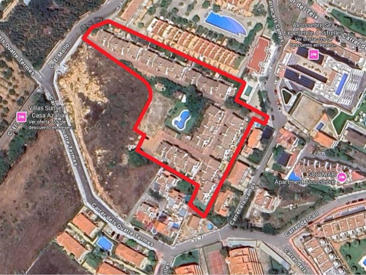 Suelo urbano residencial en Alcossebre..Suelo urbano residencial en Alcossebre, a 200 m. de la playa, en zona residencial turística con todo tipo de servicios cercanos y bien comunicada mediante la N-340 y la A-7. Cuenta con 677 m2 de suelo dentro del residencial denominado Porta Alcala, en el cual hay 7 bloques construidos y las zonas comunes con piscina, siendo este el último bloque por construir. Para la promoción de 6 viviendas adosadas en dos plantas y con 97 m2 construidos cada una de ellas. Con División Horizontal inscrita. Oportunidad.