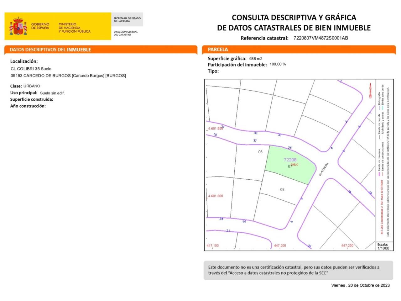 Terreno en venta en Carcedo de Burgos.En la URBANIZACIÓN VALMORAL, urbanización de lujo y complejo deportivo privado más importante pegando a la ciudad y con todo tipo de servicios piscinas cubierta y descubierta, pádel, tenis, gimnasio, club social, minigolf, baloncesto, futbol, etc.. Las dos parcelas unidas tienen una superficie de 1235 m y sobre ellas esta una vivienda en construcción actualmente está la pta. destinada a garajes, trastero, taller con una superficie de 200 m y la pta. destinada a gimnasio, piscina cubierta y merendero de otros 200 m. La pta. destinada a vivienda esta solamente recién empezada. Lo más importante es el precio, muy por debajo de los costes de la misma. Infórmese en las oficinas de Arija Inmobiliaria situadas en Avda. Reyes Católicos 49,bajo 947 10 25 10 y calle San Bruno 9,bajo 947 210 947.Tu Casa de Confianza